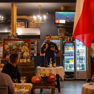Na początku szef restauracji Matteo przywitał gości. Przybliżył historię święta i samą postać świętego Marcina. Następnie zaprosił sommeliera Krzysztofa Skibę do zaprezentowania win które zostały wybrane do degustacji.